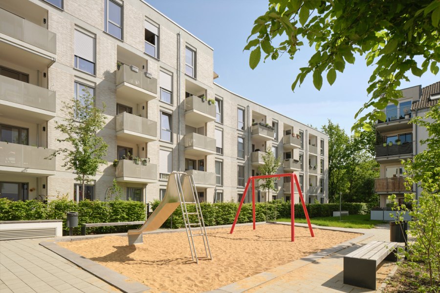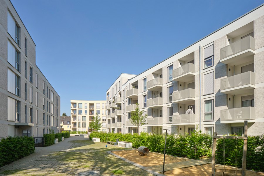 Das Wohnquartier in der Herler Straße in Köln-Buchheim mit insgesamt 237 Wohneinheiten und einer Kindertagesstätte wird in der Jurybegründung als "vorbildliches Stück Stadtentwicklung" gelobt.