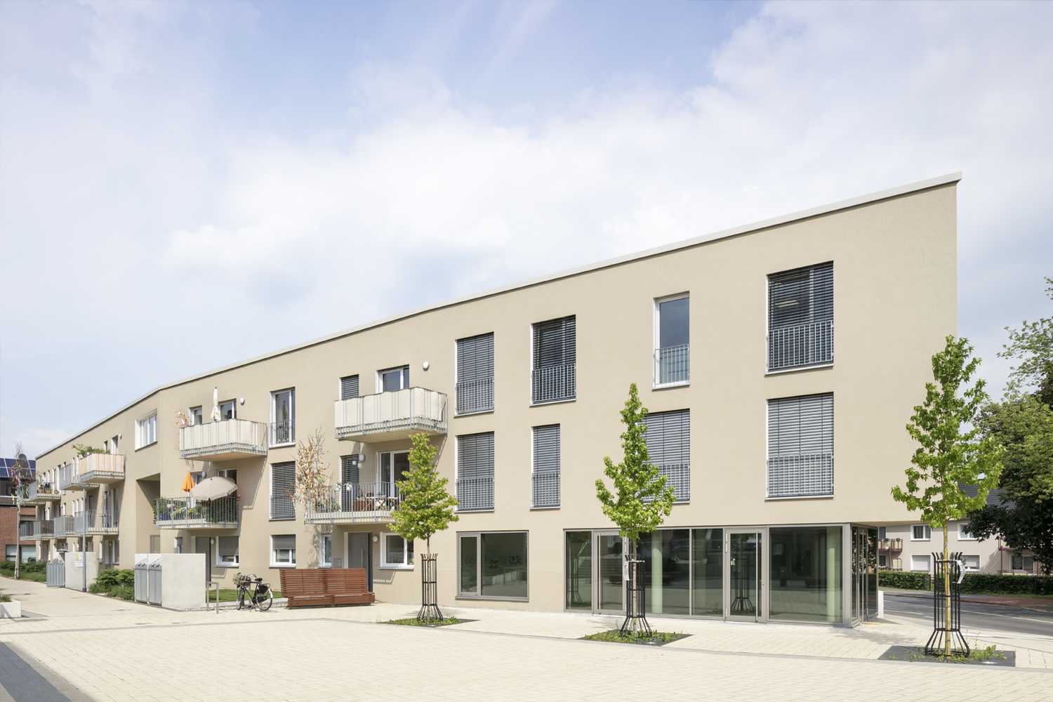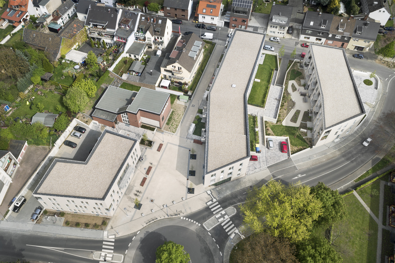 Die Gebäude bilden einen neuen Quartiersplatz mit Café und Außengastronomie und tragen zur Belebung des Stadtteils bei.