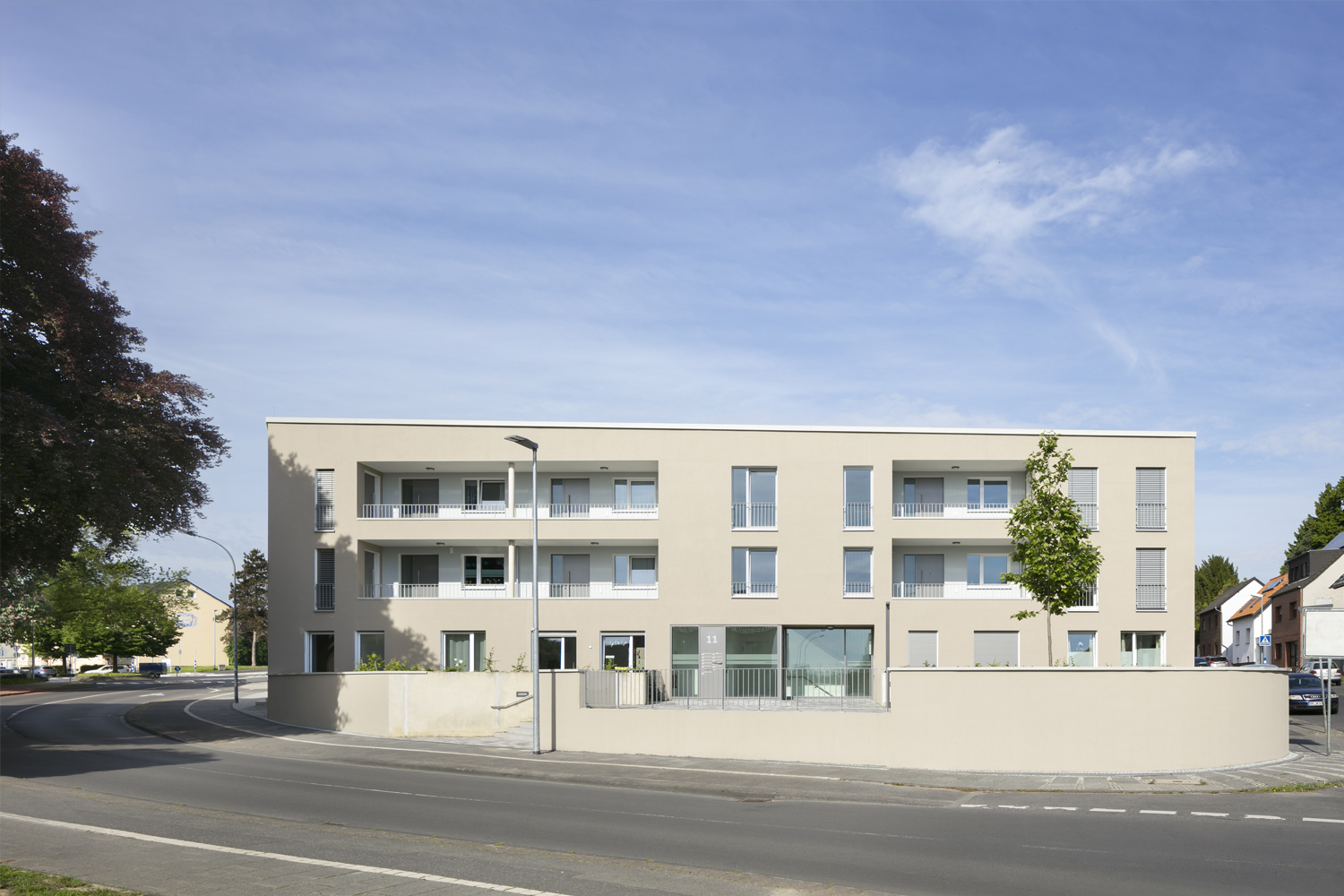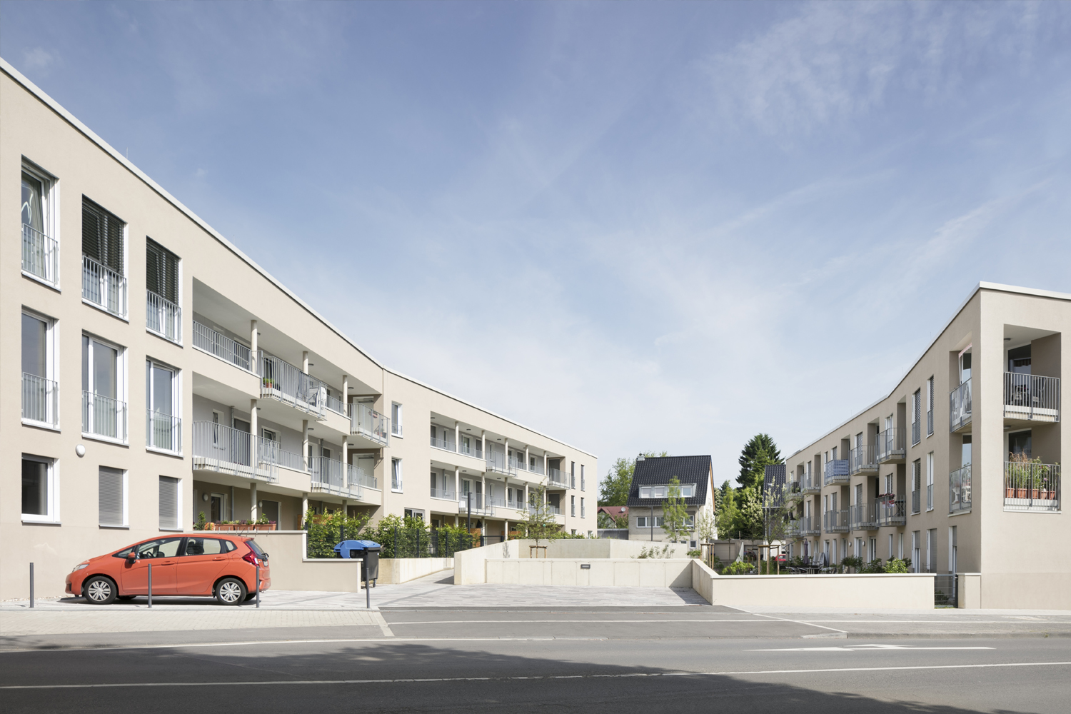 Die Wohnangebote im Quartier werden durch den Neubau von drei Gebäuden mit 30 barrierefreien Wohneinheiten, davon zwölf öffentlich geförderte, einer Demenz-WG und einer Wohngruppe für Mobilitätseingeschränkte zeitgemäß erweitert.